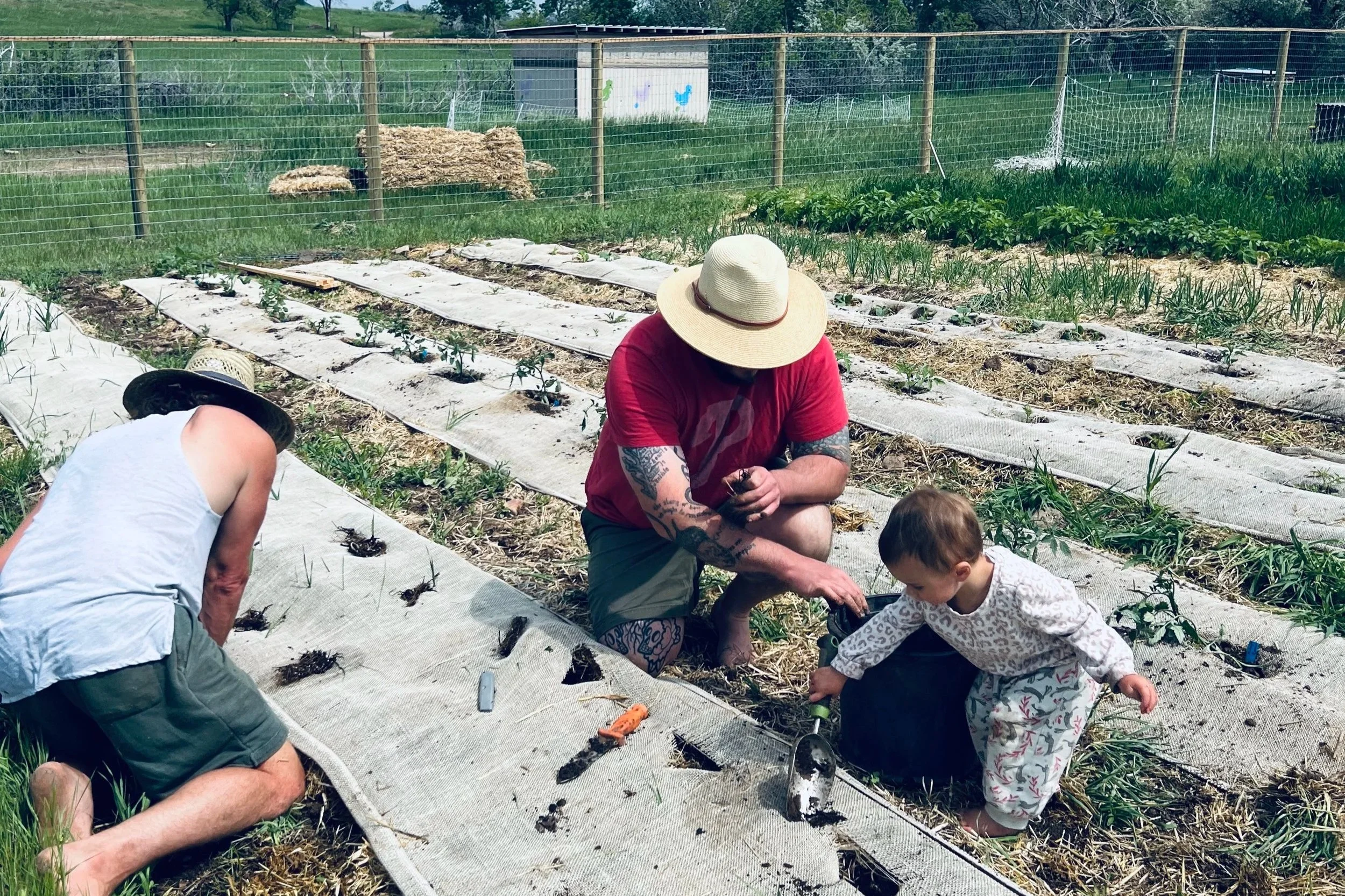 Direct seeding and transplanting to garden beds, raising animals.